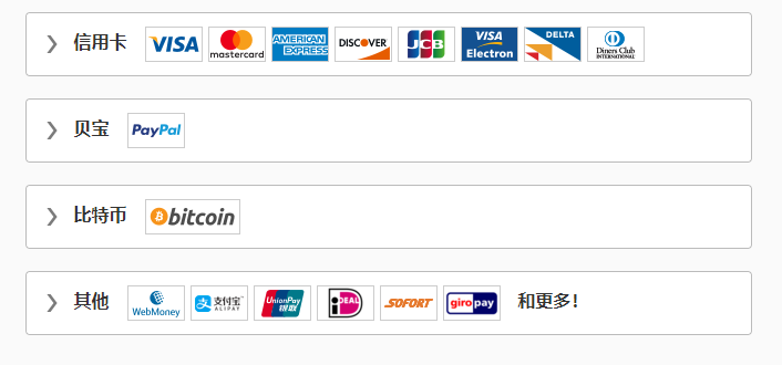 Exp加速器支持的支付方式有:银联、支付宝、信用卡和paypal支付。