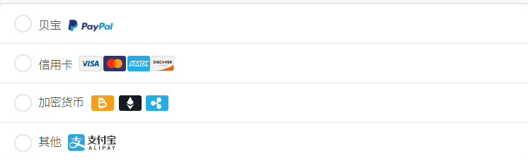 Nord加速器支持的支付方式如下图,用支付宝、银联、Paypal或者信用卡付款都是十分方便的。